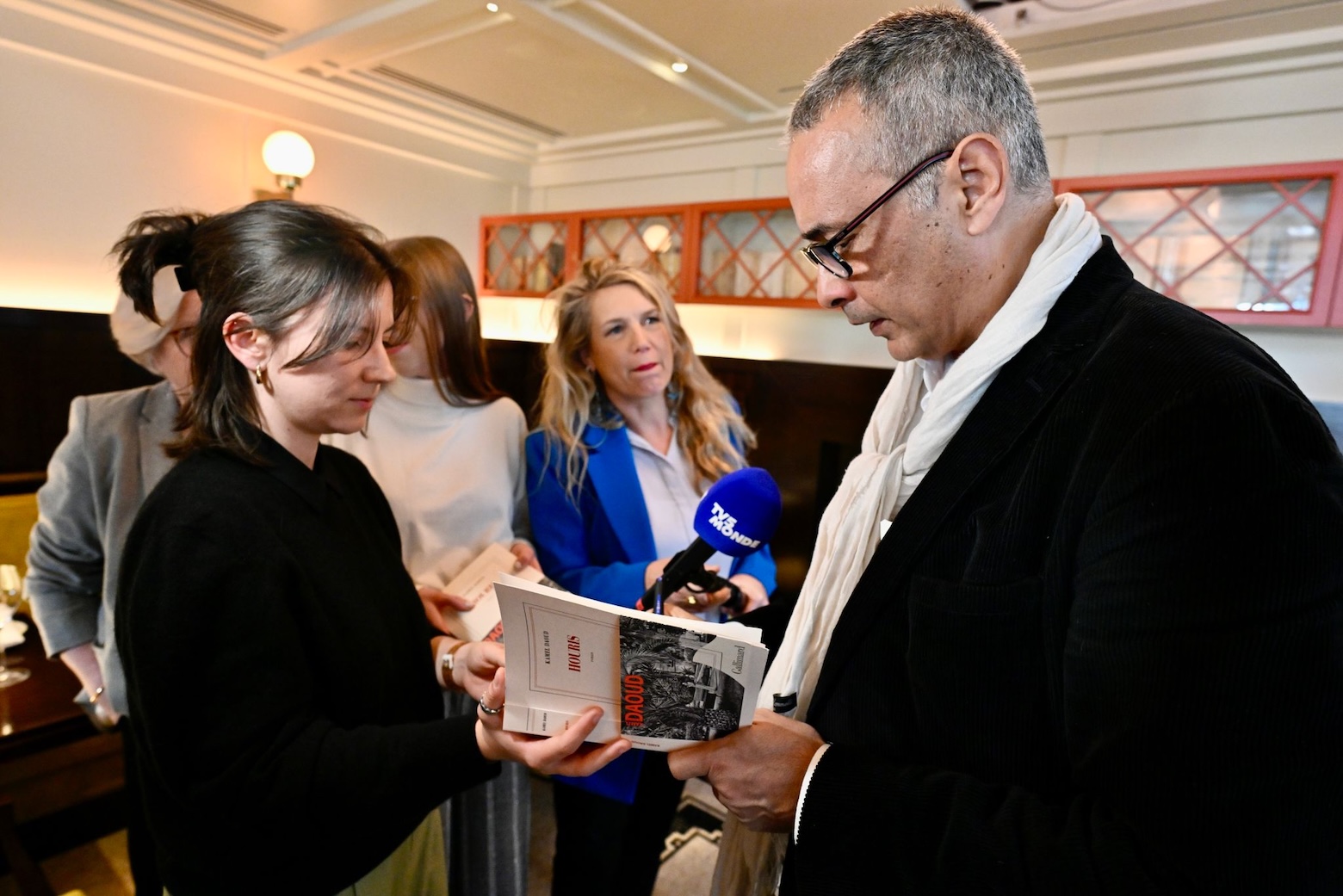 Konečně nadchází čas vyhlášení. Akademici rozhodli poměrně rychle, po jediném kole hlasování. Důvod je jasný: vítězem se stává Kamel Daoud a jeho kniha Houris. Ozve se mdlý potlesk – dnes je zde oproti minulým rokům podprůměrná účast. „Možná kvůli americkým volbám…“ zaslechnu. Anebo kvůli poměrně jasnému favoritovi. Málokdo se chce dívat na předem vyhraný zápas. Daoud euforicky zamává z okna novinářům, poté následuje kolotoč povinností – nejdříve tradiční uložení podepsaného výtisku vítězné knihy do knihovny restaurace a poté tisková konference. Otázky se točí kolem tabu, kterého se kniha dotýká – mluví o alžírské občanské válce v devadesátých letech. Román, v Alžírsku zakázaný, se mimo jiné věnuje i údělu žen. „Doufám, že tato kniha v alžírské společnosti spustí ozdravující proces,“ říká Daoud. K otázkám týkajícím se kontroverzí jeho knihy, jako například obvinění, že vykradl lékařský spis pacientky své ženy psychiatričky, uvádí: „Podívejte se, během autogramiád v Paříži za mnou přichází neskutečně velké množství lidí. Všichni ti lidé jsou plní emocí… Chci hlavně inspirovat spisovatele budoucnosti, dodat jim pro jejich boj energii. Samozřejmě, že moje kniha vzbuzuje zášť, ale vzbuzuje také obdiv,“ dodává.