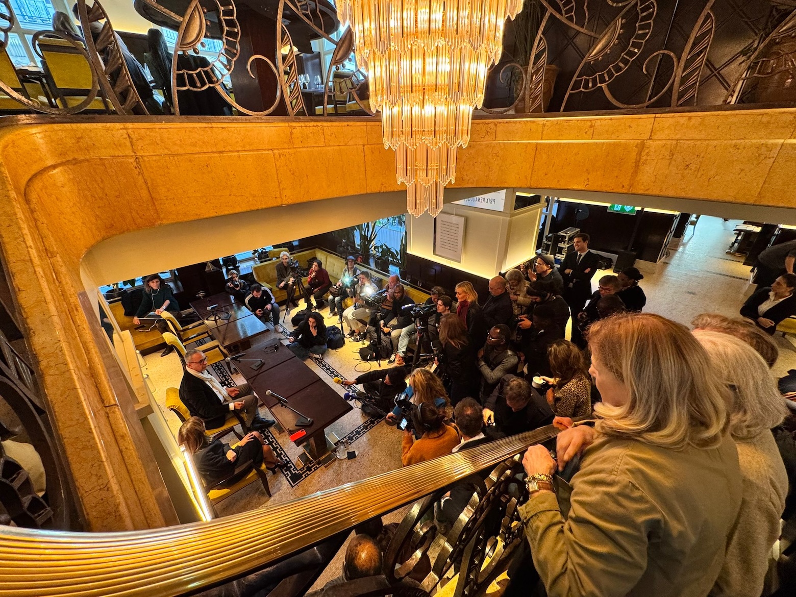 Přichází den D – do restaurace Drouant, která zatím ještě není v obležení novinářů, se dostáváme krátce po jedenácté hodině. Zatím je klid před bouří, mediální týmy zabírají nejlepší místa a nastavují mikrofony. Někteří novináři si nás měří. Snaží se odhadnout, jestli jsme dost důležité, aby s námi zapředli rozhovor. To už nás ale vyzvedává Françoise Rossinot a uvádí nás do salonku, kde za chvíli začne oběd akademiků, během kterého se rozhodne o vítězi.