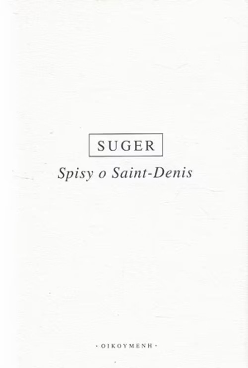 Ve zbrusu novém patnáctém svazku „Knihovny středověké tradice“, kterou vydává nakladatelství Oikúmené, má od nynějška český čtenář k dispozici v bilingvním latinsko-českém vydání všechny spisy, které souvisejí s kostelem Saint-Denis: Ordinatio („Nařízení“), De consecratione(„Svěcení kostela“) a De administratione („Správa opatství“).